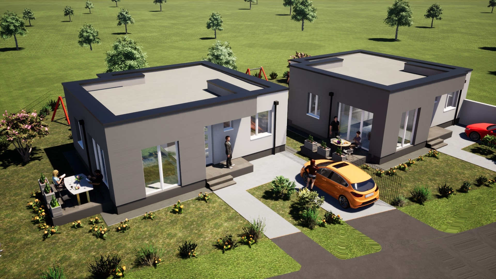 Győrtől mindössze 20 percre, Tét újonnan beépülő, rendezett részén kínálunk eladásra két korszerű, lapostetős családi házat, saját utcafronttal és teljesen szeparált, privát telekrésszel.