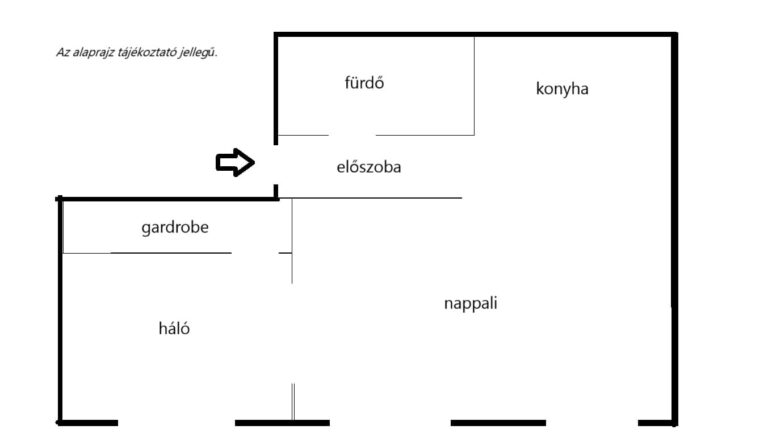 Helyiségek: előszoba, fürdőszoba, konyha, nappali, hálószoba, valamint a hálóból nyíló, külön gardrób helyiség – amely a lakás egyik kiemelt értéke.