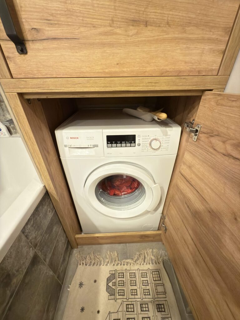 – mosógép (rejtett szekrényben)