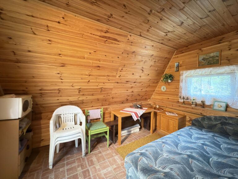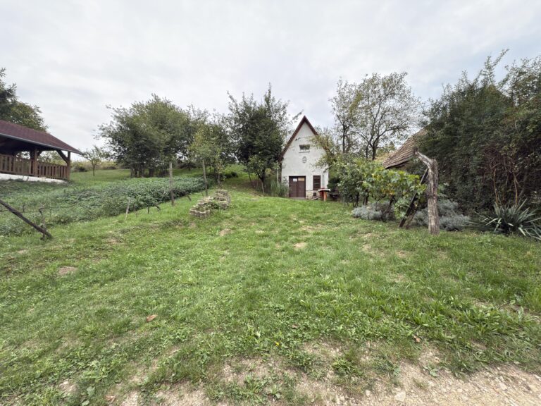 A területen található, 3 szintes, 14 m2-es hétvégi ház, présház és pince a hagyományos vidéki építészet jegyeit hordozza. A környezet csendes, erdőkkel és természeti zölddel ölelt – tökéletes hely a pihenésre, borászkodásra vagy akár egy hangulatos hétvégi ház kialakítására.