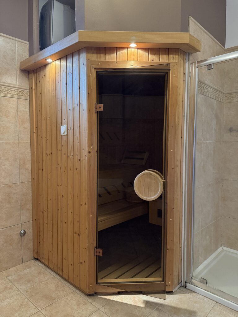 Amerikai konyhás nappali, nagy méretű fürdőszoba (szaunával), külön WC, télikert