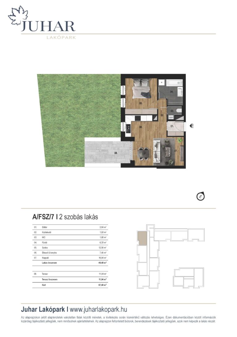 - kert alapterület: 68 m2, melyből 11 m2 térkövezett