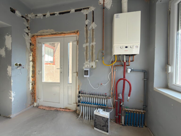 - Komplett fűtési rendszer kialakítása (új kazán + padlófűtés)