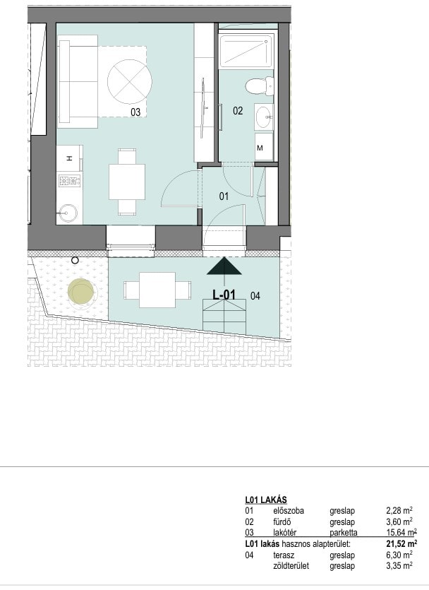 Fszt 1: 21,81 m2 + 6,3 m2 terasz + 3,35 m2 kert: 32.205.000 Ft